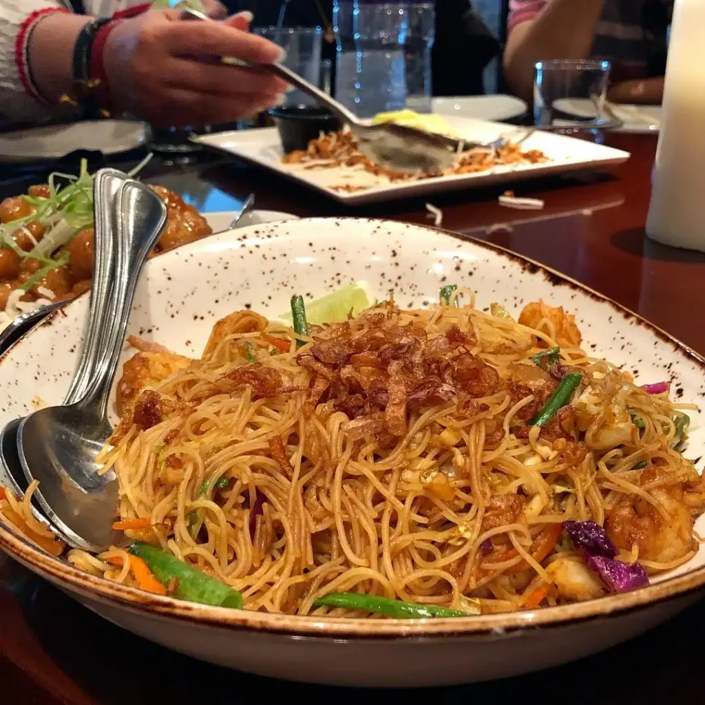 It’s inspired by Singaporean-style noodles, but it’s an Americanized version. Traditional versions are often spicier and use a specific thin rice vermicelli. P.F. Chang’s offers a delicious, but milder and more accessible, take on the classic.